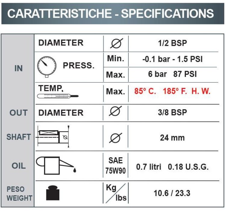 Плунжерный насос высокого давления с кривошипной передачей BertoliniTAM 1515 PRO. Номинальное давление 150 бар, расход воды 15,1 л/мин, частота вращения вала 1450 об/мин. Гладкий вал 24мм, шпонка.