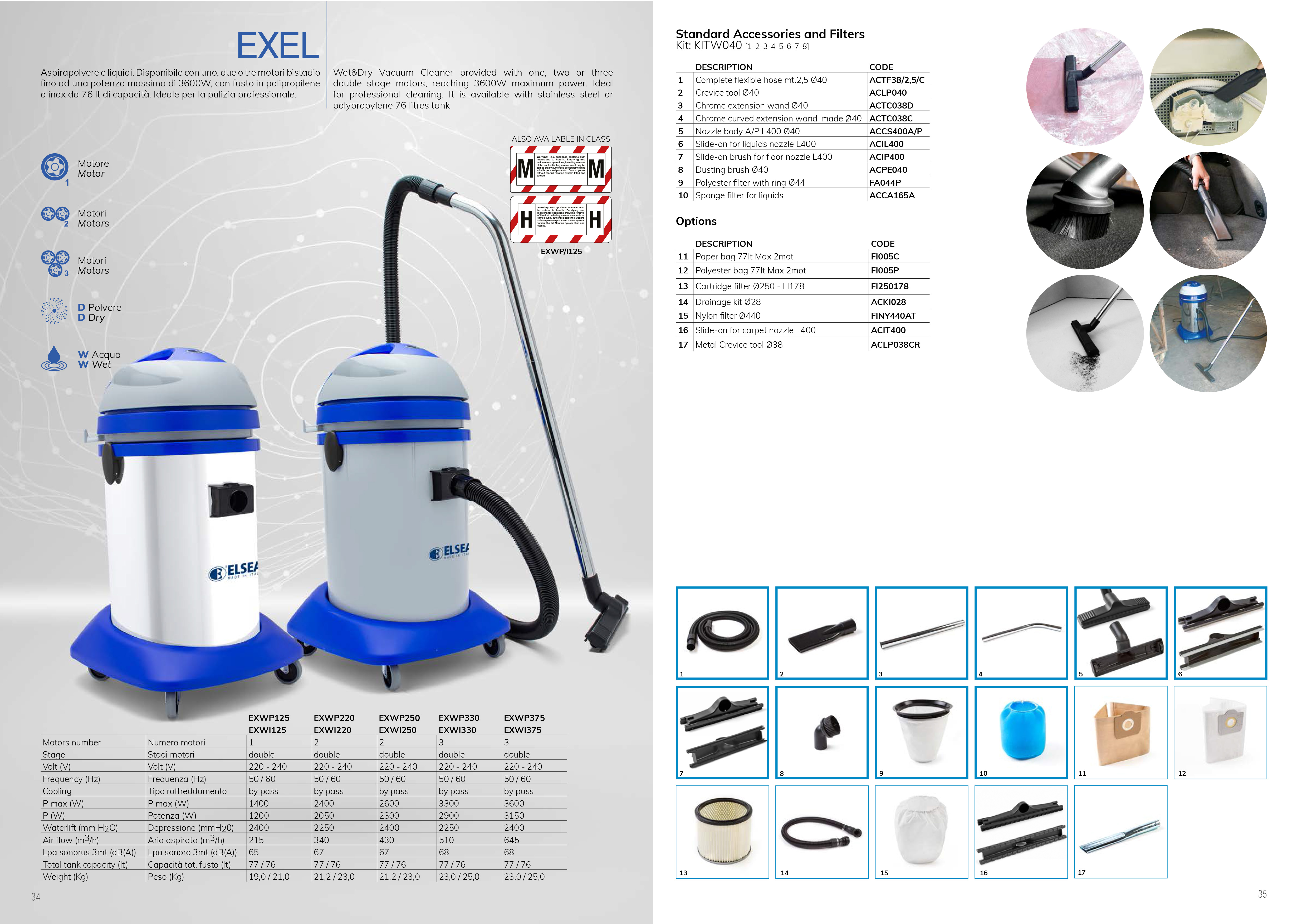Пылесос EXEL WI330Y CW, производства итальянской компании Elsea, предназначен для сбора больших объемов сухой и влажной грязи.