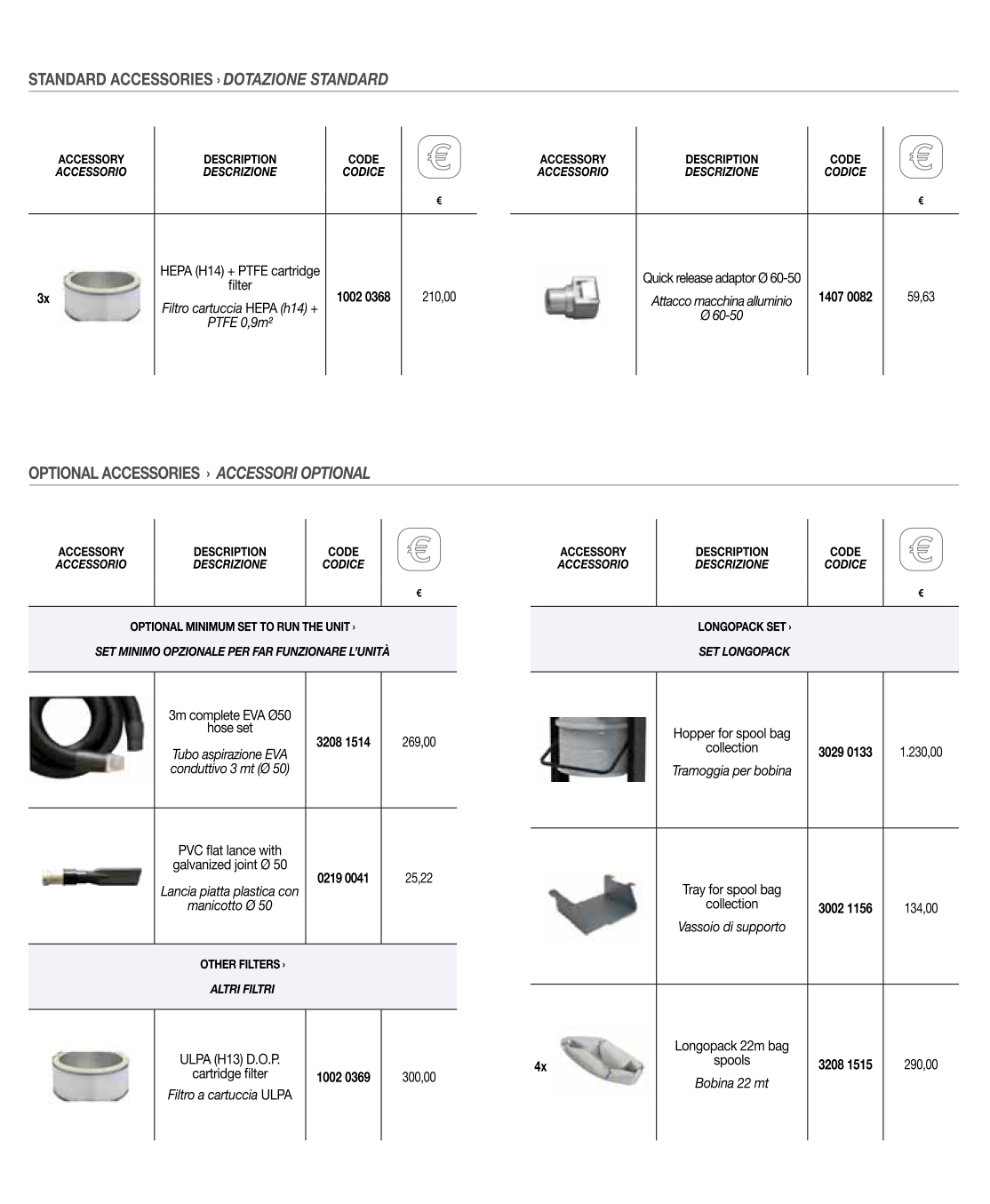• Металлический боковой входной канал и защита фильтра из нержавеющей стали AISI 304.