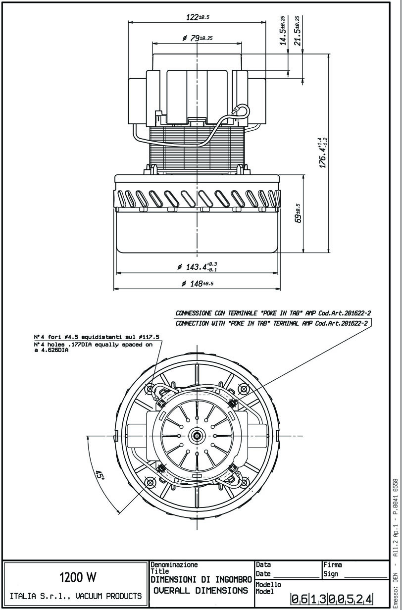 Турбина вакуумная AMETEK 11 ME 06 для пылеводососов: